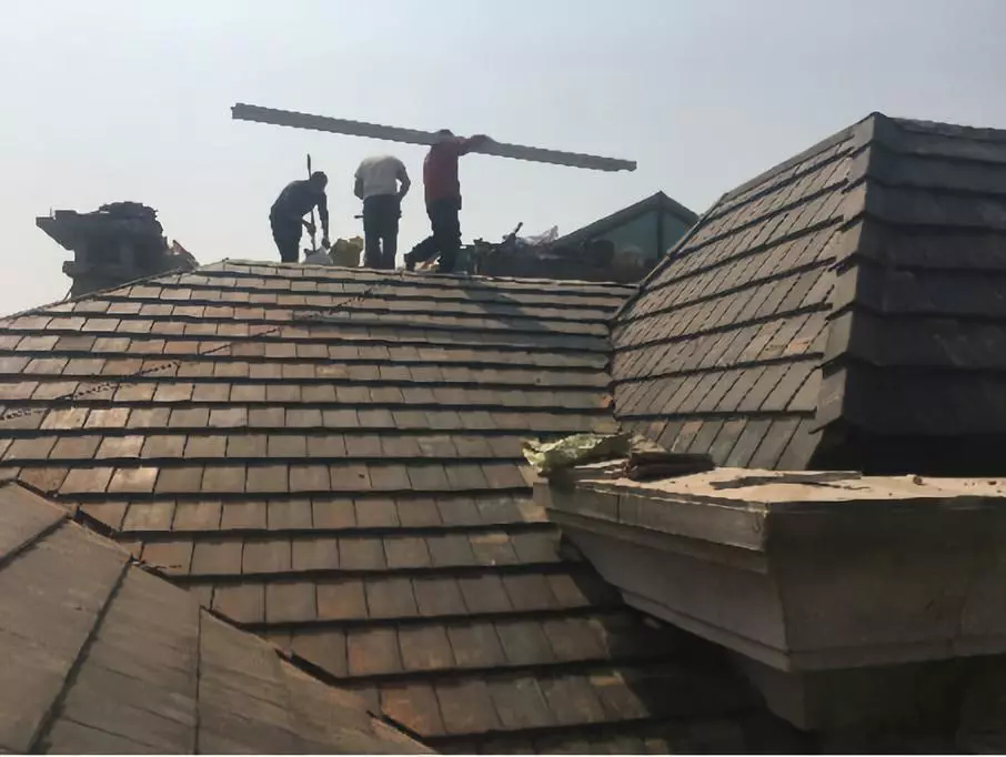 # 化工廠廠房阻燃防水工程勘查與解決方案 ## 一、工程勘查情況 在對化工廠 1#、2#、3#廠房進行現場勘查后,發現各廠房呈現出不同的屋面狀況與漏雨問題。其中 1#、3#廠房漏雨現象較為突出,而這與多方面因素相關。 ### (一)屋面垃圾與雨水管問題 施工完畢距今已有較長時間,屋面長期積累了大量垃圾,許多雨水管被雜物封堵。一旦遭遇強降雨天氣,雨水無法順暢通過雨水管排出,就會從天溝與屋面板之間的縫隙回漏到室內,從而造成滲漏。 ### (二)屋面板材接縫與破損問題 自屋面施工完成后,長時間未進行維護和修補,致使屋面部分板面(包括陽光瓦)出現接縫不嚴以及破損情況。這些薄弱部位在雨水沖刷下,無法有效阻擋雨水滲透,進而導致局部漏雨現象頻發。 ### (三)屋面坡度與接縫設計問題 屋面設計坡度較小,不利于雨水的快速排放,容易造成積水。加之屋面板接縫本身不夠嚴密,當降雨量較大時,積水達到一定厚度便會沿接縫處倒流回灌到板內,屋脊部位尤為嚴重,因為該區域是雨水匯集的關鍵部位,積水深度相對更大,滲漏風險也就更高。 ### (四)屋面靠近天溝部位的板材問題 在靠近天溝 600 范圍內,屋面板局部板材面固定點出現松動甚至塌陷,面層板也有部分板面產生折斷裂口,這些問題直接導致雨水滲漏。此外,部分靠近天溝的屋面板因上屋面作業人員頻繁踩踏,板面上翹并出現裂縫,使得雨水能夠輕易滲漏到室內。 ## 二、防水做法與修補方案 ### (一)確定防水做法 綜合考慮東方屋面防水施工的特點以及化工廠廠房的實際需求,確定廠房屋面防水采用基層為一布三油,面層為 4 厚 SBS 防水卷材的方案。這種組合能夠為屋面提供較為可靠的防水屏障,一布三油基層可以增強屋面基層的防水性能和抗裂能力,4 厚 SBS 防水卷材則具備良好的耐候性、防水性和抗拉伸性能,兩者相輔相成,有效抵御雨水侵蝕。 ### (二)具體修補方案 1. **清理屋面與疏通雨水管** 首先安排專業人員對屋面垃圾進行全面清理,將堆積在屋面上的雜物、灰塵等徹底清除,同時對堵塞的雨水管進行疏通,確保雨水排放系統暢通無阻。此步驟能夠有效解決因屋面垃圾堆積和雨水管封堵導致的漏雨問題,恢復屋面正常的排水功能。 2. **雨后漏點標記與局部點修補** 在降雨過后,及時對屋面的漏點進行精確標記。根據標記位置,針對屋面有接縫不嚴和破損的局部板面(含陽光瓦)進行細致的修補工作。修補過程中,將對損壞的板材進行更換或修復,對接縫處進行重新密封處理,確保局部區域的防水性能得到恢復,從而消除因局部板面問題引發的漏雨隱患。 3. **屋脊部位通長修補防水** 針對屋脊部位因坡度和接縫問題導致的嚴重滲漏情況,在屋脊部位每側 700 范圍內進行通長修補防水作業。施工時,將嚴格按照防水工藝要求,先對基層進行處理,確保基層平整、干燥、無灰塵,然后鋪設一布三油基層,并在其上鋪設 4 厚 SBS 防水卷材,卷材鋪設應平整、無氣泡、無褶皺,且卷材之間的搭接寬度應符合規范要求,通過這一系列措施有效防止雨水在屋脊部位的倒流回灌,確保該區域的防水效果。 4. **天溝兩側補加防水** 對于靠近天溝 600 范圍內因板材固定點松動、塌陷、折斷裂口以及上屋面作業人員踩踏導致的滲漏問題,在天溝兩側 600 范圍內補加防水。具體操作包括對松動和塌陷的固定點進行加固修復,對有折斷裂口和裂縫的板面進行處理,然后在該區域增加防水卷材的鋪設層數和寬度,加強防水處理,形成一道嚴密的防水防線,有效阻止雨水從該區域滲漏到室內。 通過以上勘查分析與針對性的修補方案實施,有望全面解決化工廠廠房的漏雨問題,提高廠房的防水性能,確保廠房內部生產設備和物資不受雨水侵蝕,為化工廠的正常生產運營提供有力保障。